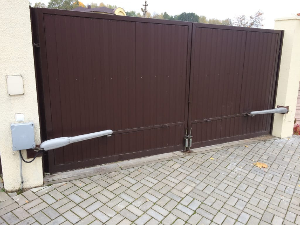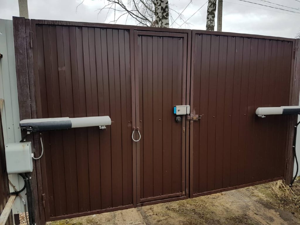 Ворота распашные с дистанционным управлением из профнастила с калиткой